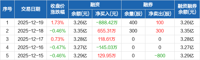 常熟汽饰:融资净偿还888.42万元,融资余额3.26亿元(12-19)