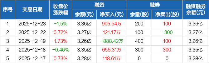 常熟汽饰:融资净买入905.54万元,融资余额3.36亿元(12-23)