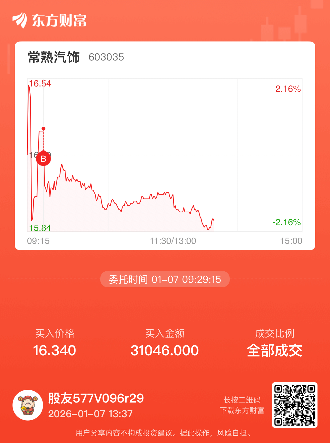 温馨提示: 1.根据《证券法》规定,禁止编造、传播虚假信息或者误导性信息,扰乱证券市场;2.用户在本社区发表的所有资料、言论等仅代表个人观点,与本网站立场无关,不对您构成任何投资建议。用户应基于自己的独立判断,自行决定证券投资并承担相应风险。《东方财富社区管理规定》