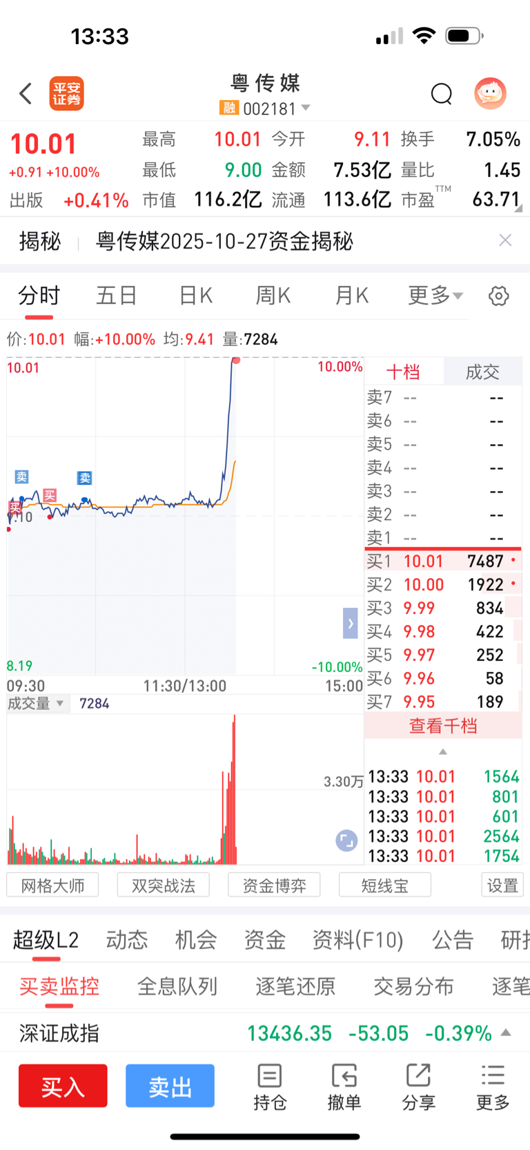 $凯众股份(SH603037)$ 兄弟们,涨停了@粤传媒002181