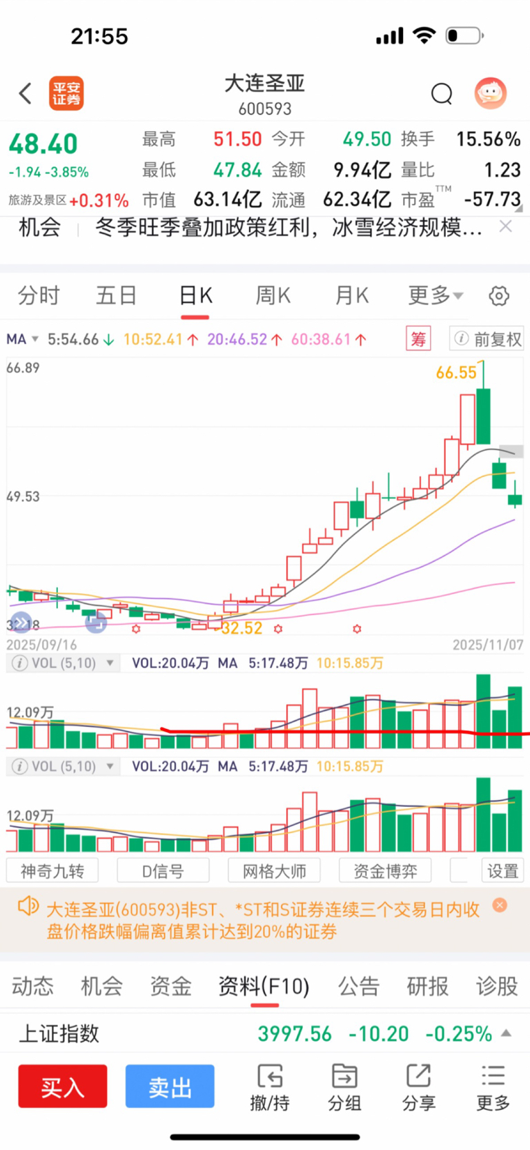$凯众股份(SH603037)$ 兄弟们下一个目标,大连圣亚,等待我现在等到跌稳了咱们再进去,冰雪概念而且旅游行业年末板块,我买的时候我提前一天跟你们说,信我的跟我上,比如打算买10万,先买3万进去,然后拿3万T如果T给套了就当加仓,后面在4万T,T成功一次赚4到5个点的话就不用拿出来了,就放着先