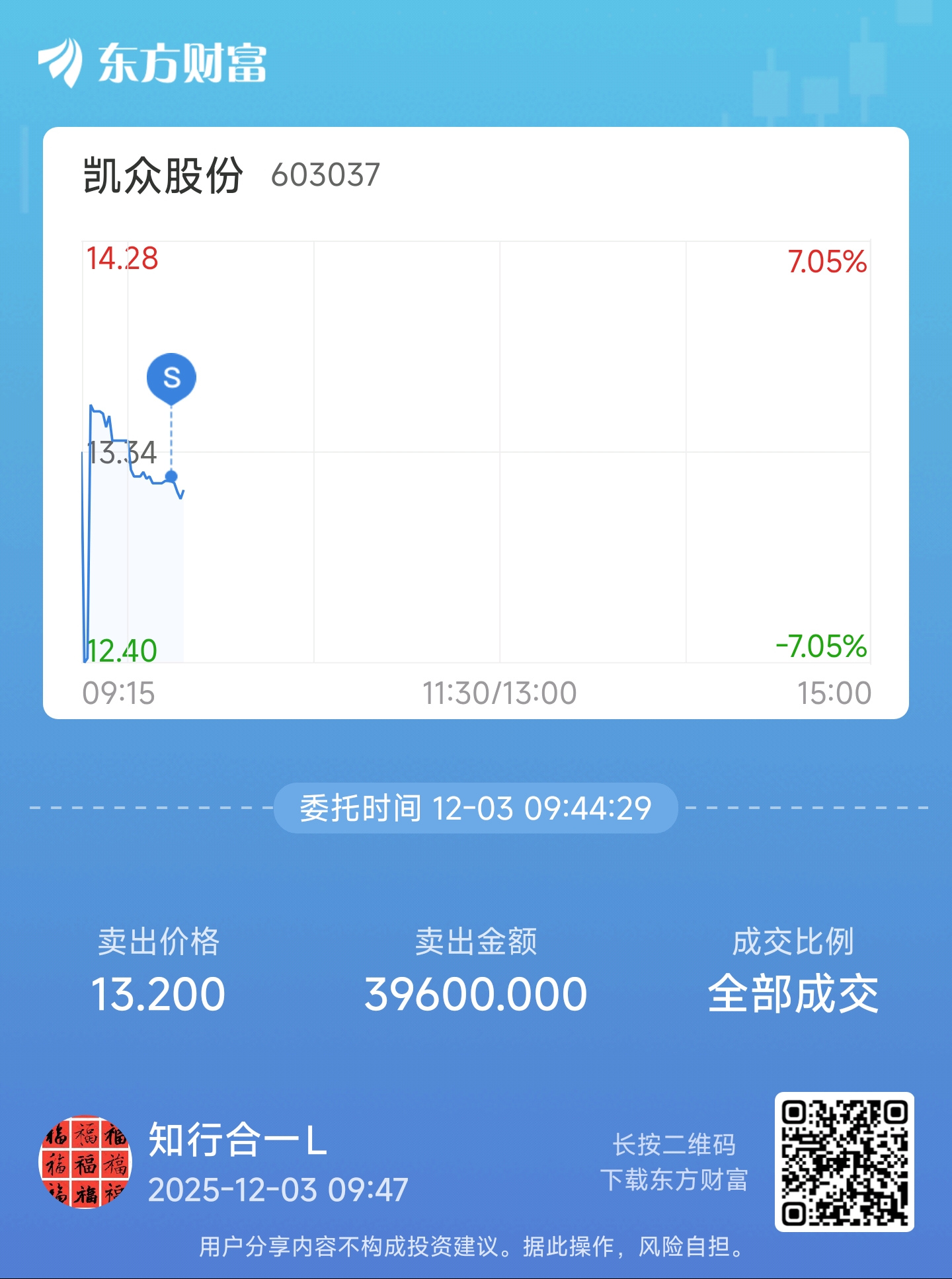 $凯众股份(SH603037)$ 朋友们我卖了。