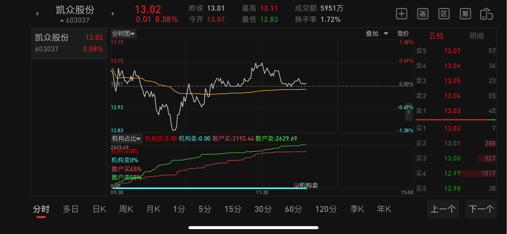 $凯众股份(SH603037)$ 没必要卖了吧,没有机构在。