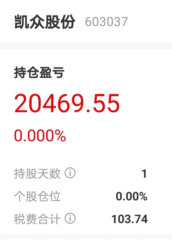 $凯众股份(SH603037)$ 感谢凯众,快进快出,挣了一年的油钱!