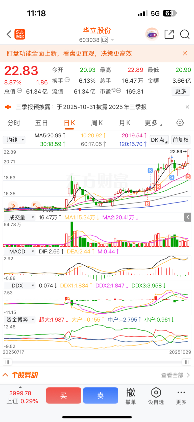 $华立股份(SH603038)$ 小华我回来了给我狠狠的拉大阳线,自从离开你每天吃面还是你对我好