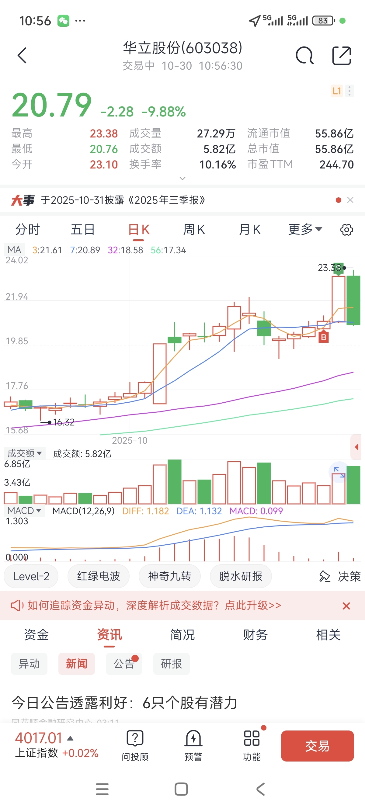 $华立股份(SH603038)$ 还好昨天跑得快,哈哈!!!