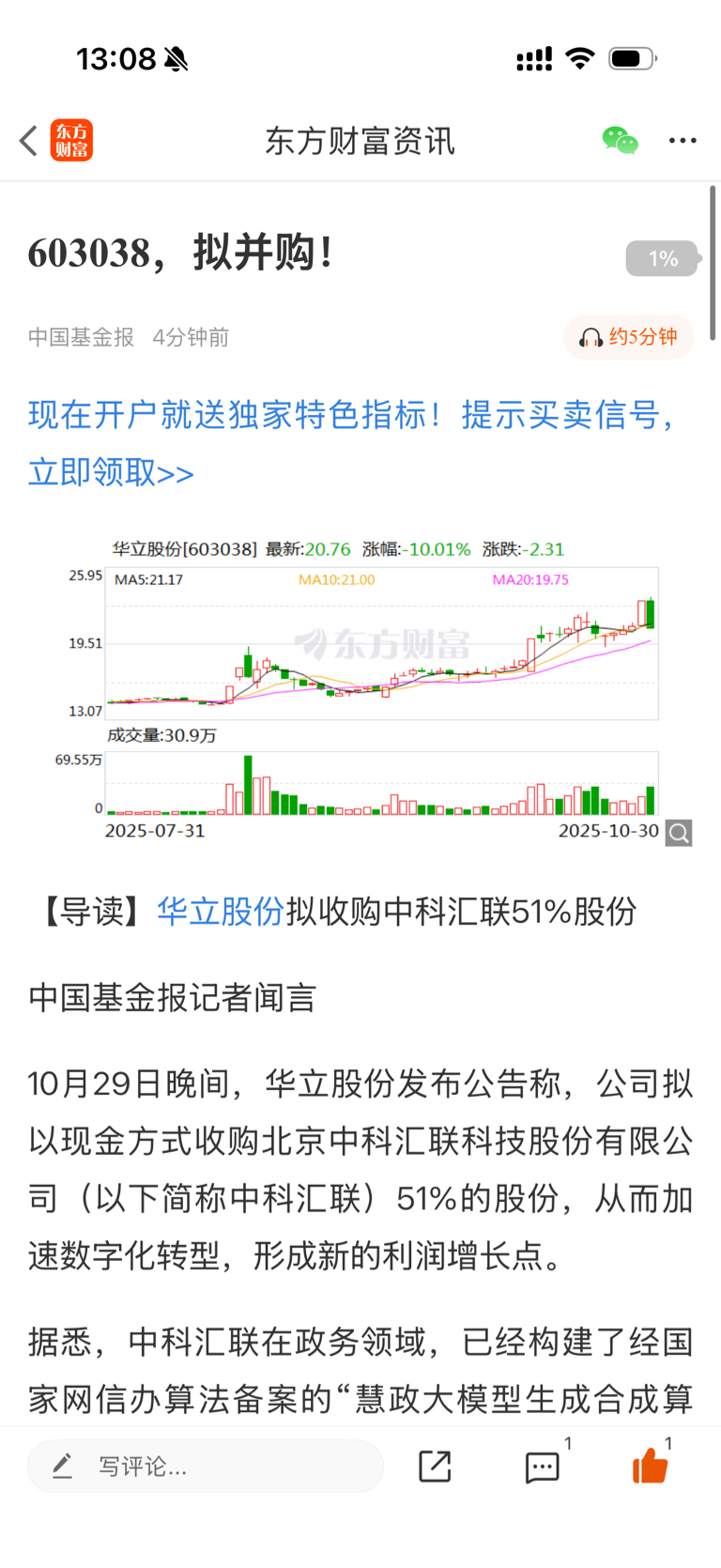 $华立股份(SH603038)$ 光提并购,跌停是一句不提