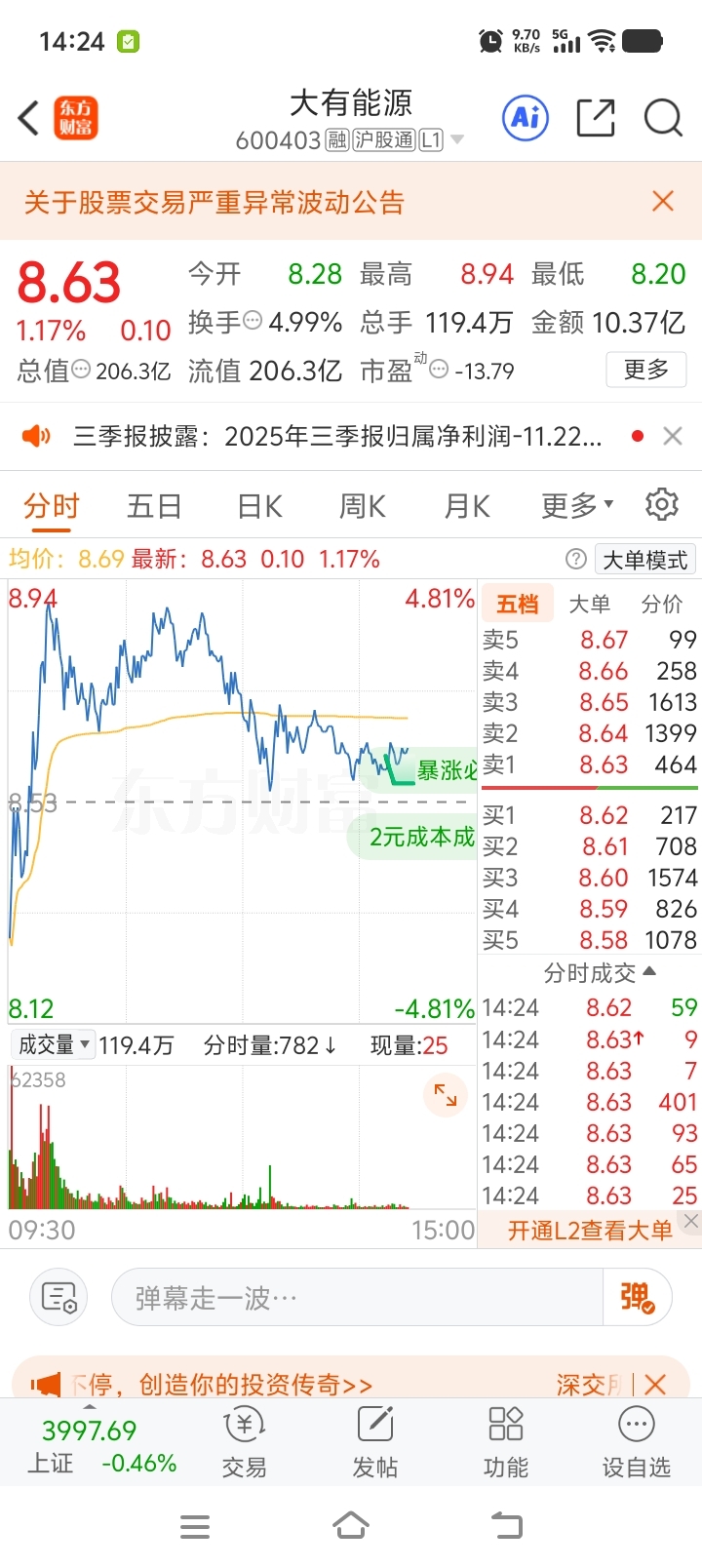 看人家的三季报亏了十一亿还被重点监控照样涨