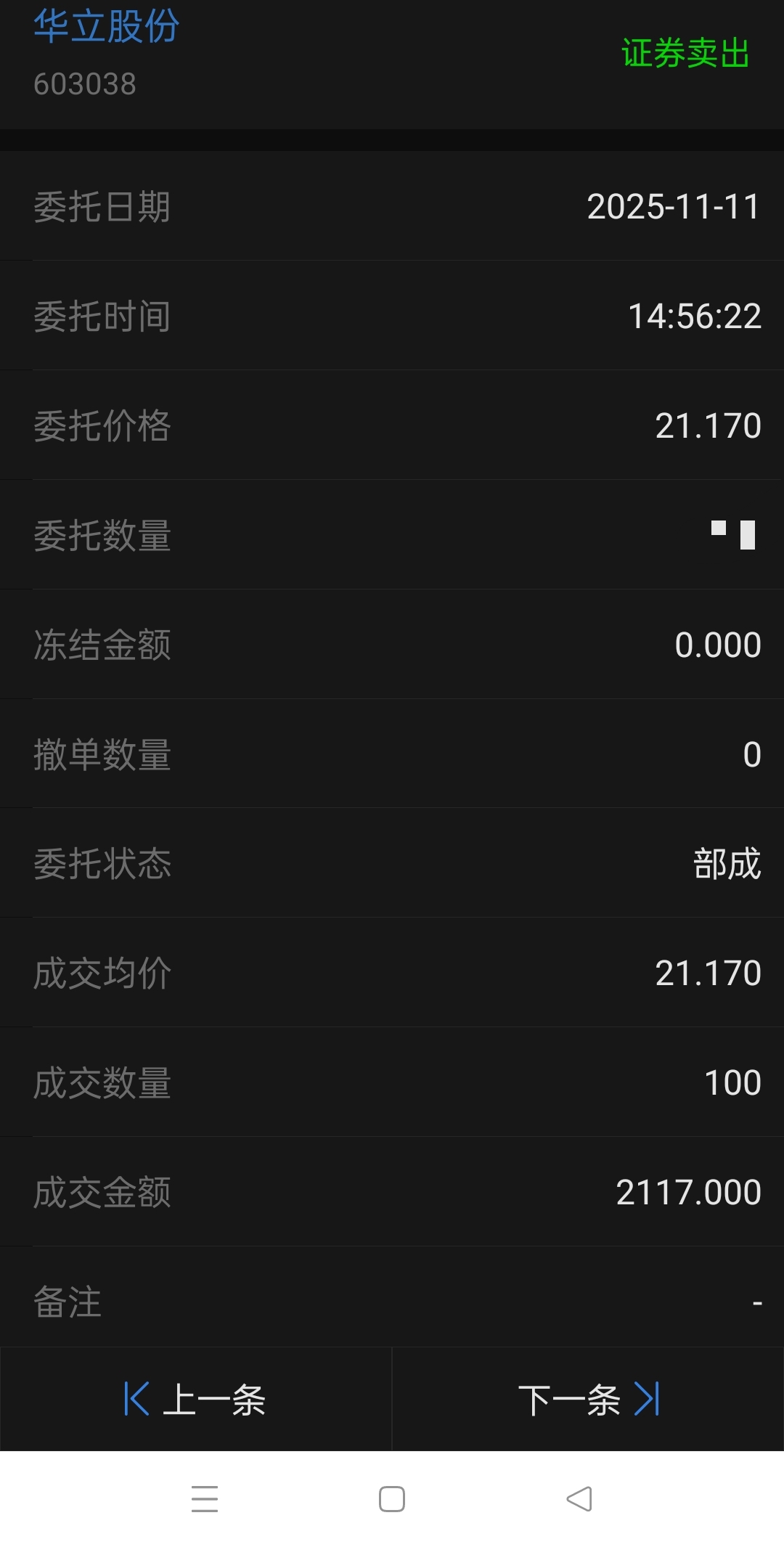 做超短线,前天买入的,昨天挂的21.17元的卖单竟然只成交了1手,竞价是21.1
