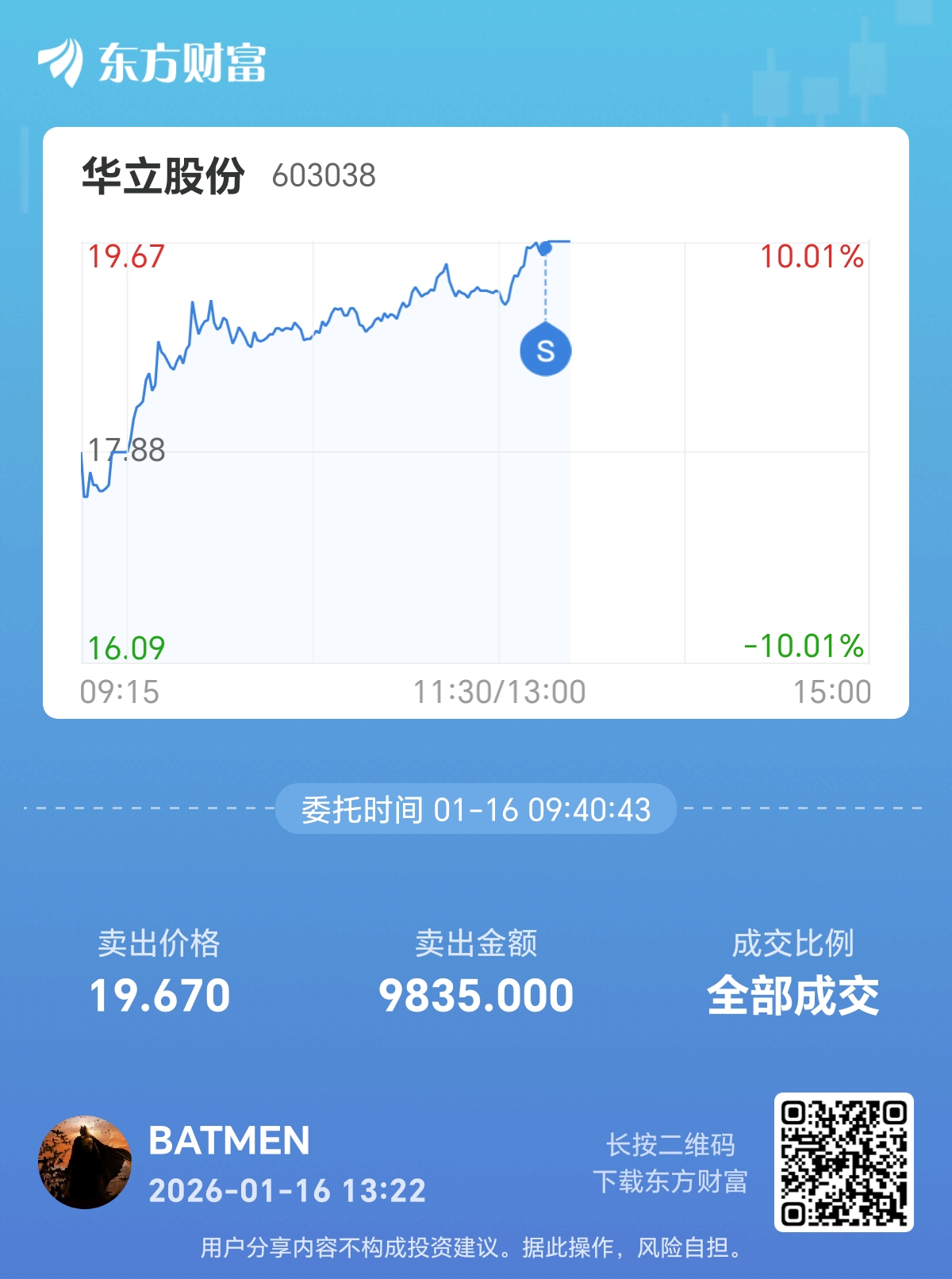 $华立股份(SH603038)$ 涨停卖了落袋为安