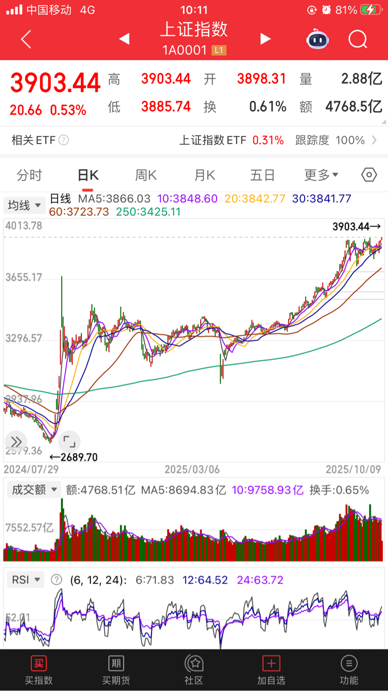 大盘马上过四千点啦!历史性时刻,大盘从底部涨了一千三百多点!范微加油,等大盘调整