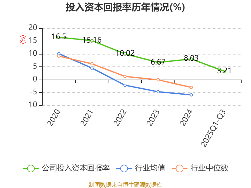 盈利能力方面, 2025年前三季度公司加权平均净资产收益率为4.53%,同比上升0.34个百分点。公司2025年前三季度投入资本回报率为3.21%,较上年同期上升0.33个百分点。