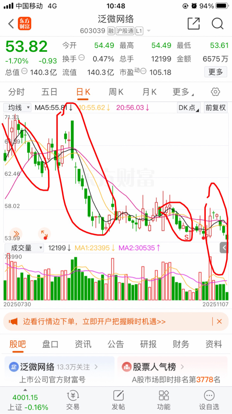 $泛微网络(SH603039)$ 不出意外,应该和上一波下跌一样来个九连鞭!九连阴!跌到四十五内,再横盘给散户抄底希望,然后继续破四十!