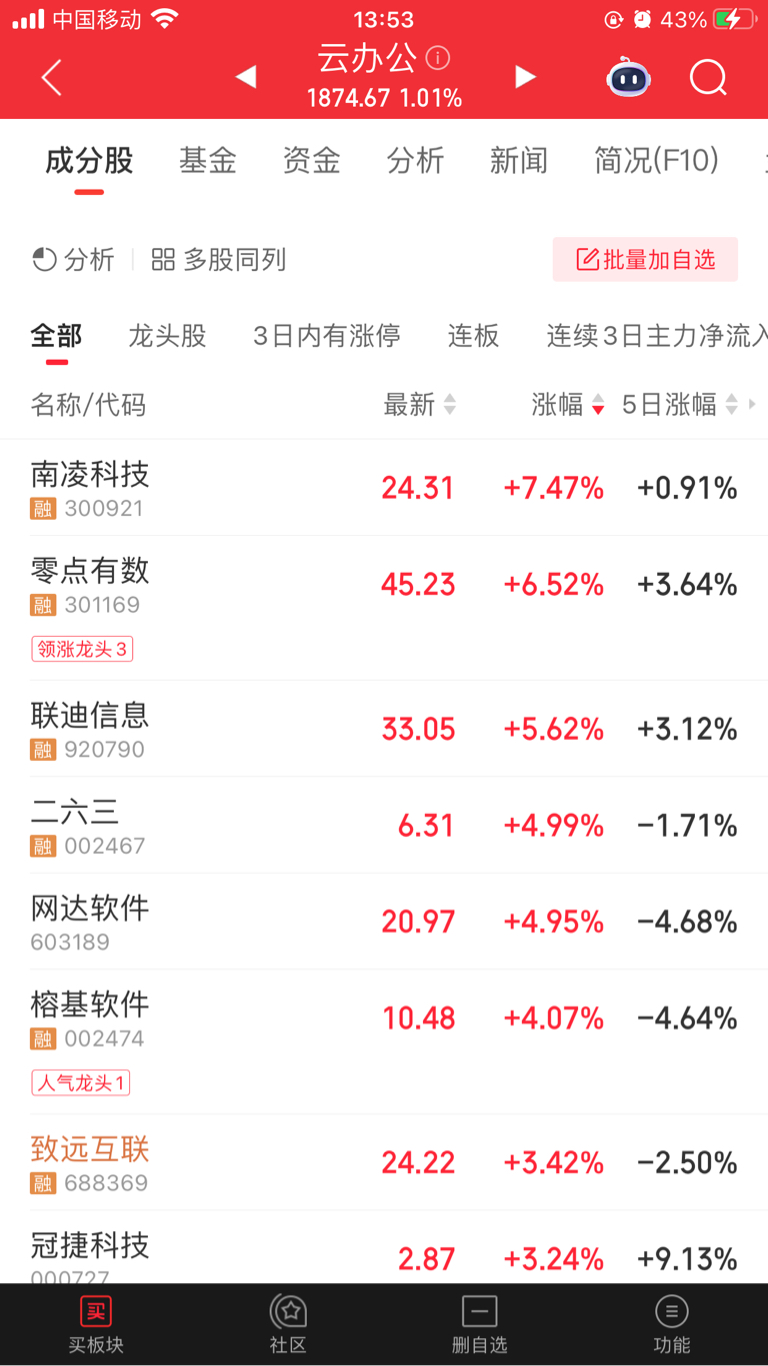 $泛微网络(SH603039)$ 板块开始爆拉了,不好,一旦回落,范微必死彻底