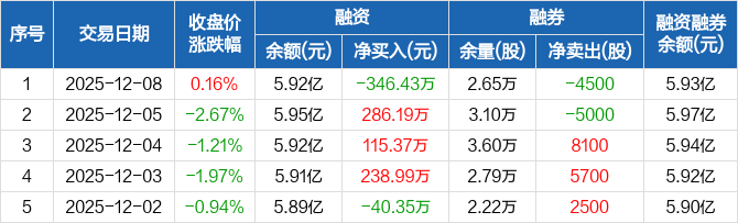 泛微网络:融资净偿还346.43万元,融资余额5.92亿元(12-08)