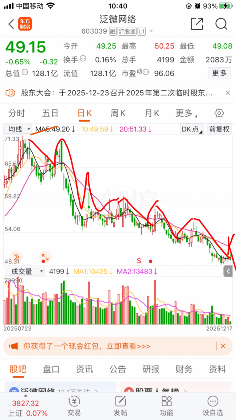 $泛微网络(SH603039)$ 这是牛市范微的走势!真的震撼,一路下跌,弱反弹下跌跌破平台,如果范微股价不跌破三十元我提头来见各位!