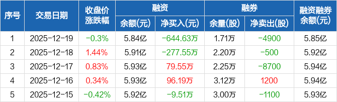 泛微网络:融资净偿还644.63万元,融资余额5.84亿元(12-19)