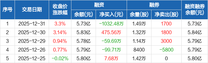 泛微网络:融资净偿还1032.48万元,融资余额5.73亿元(12-31)