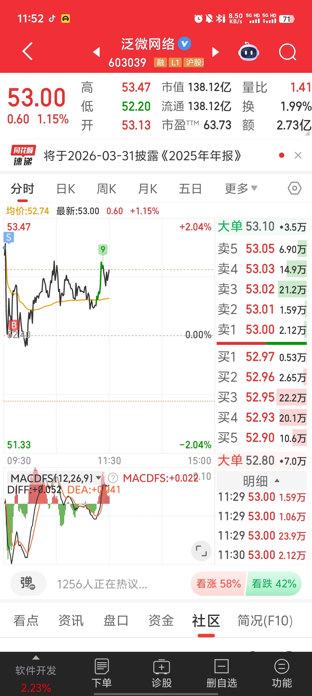 $泛微网络(SH603039)$ 昨天开仓,今天做个t,再跌再b,机会区域!