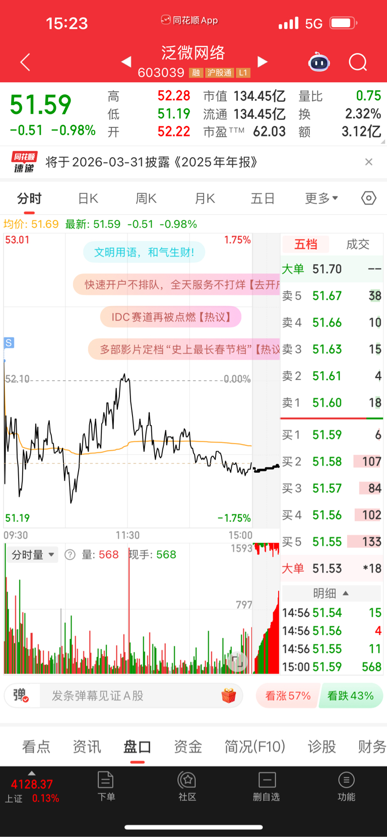 $泛微网络(SH603039)$ 太能跌了,认输离场。我估计 要涨了的,就这几天