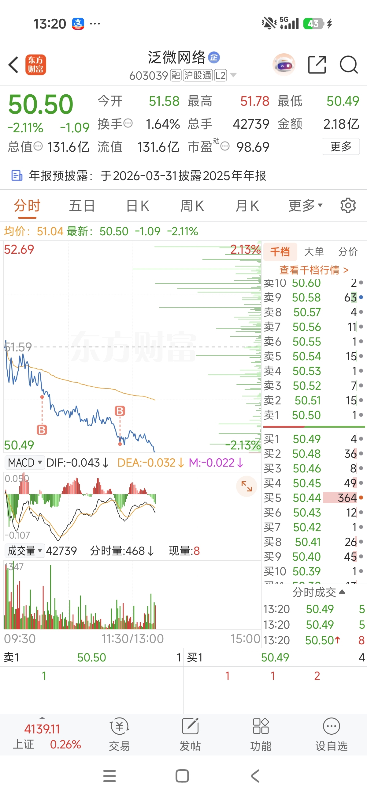 $泛微网络(SH603039)$ 又加了,接着跌,五成了。跌一个点加一成,加油跌。再跌五个点