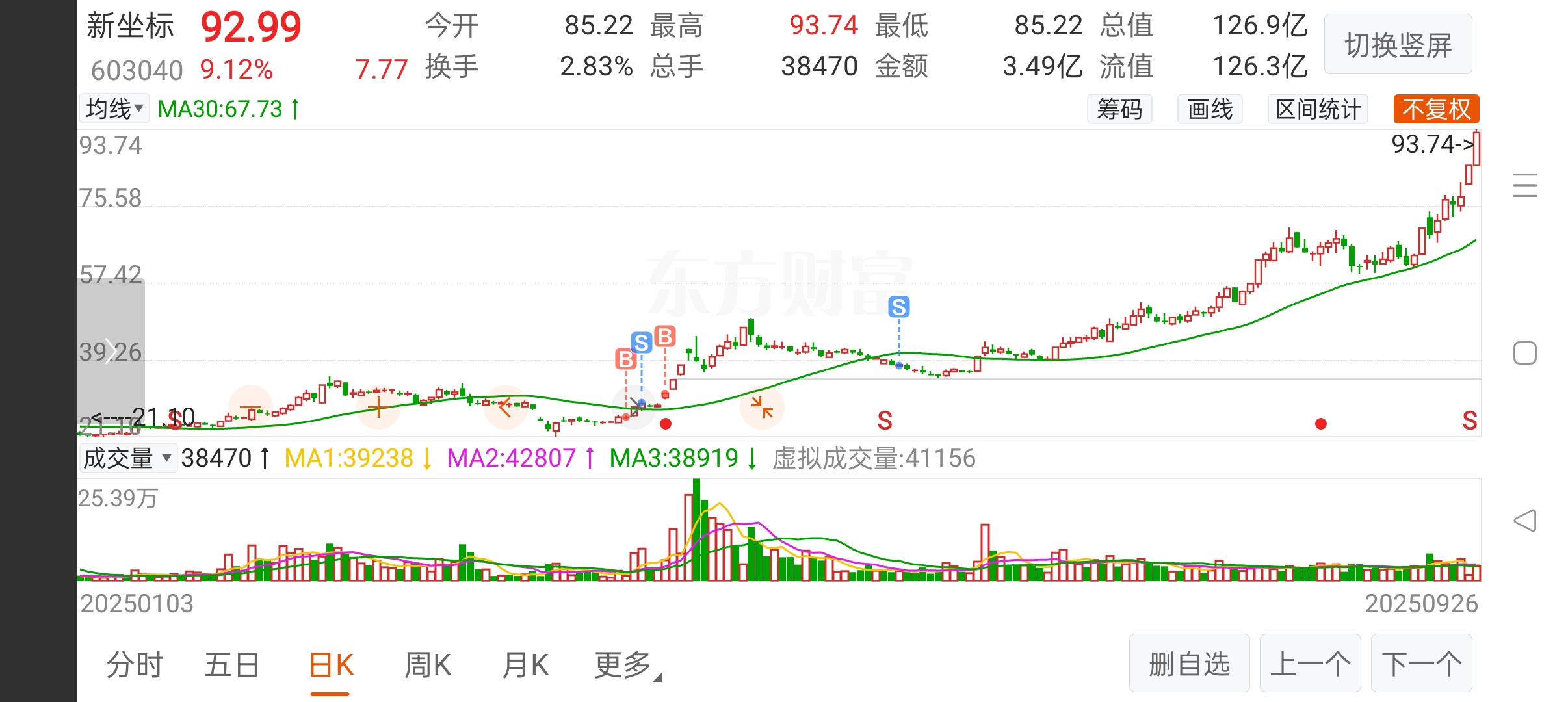 $新坐标(SH603040)$ 完美踏空