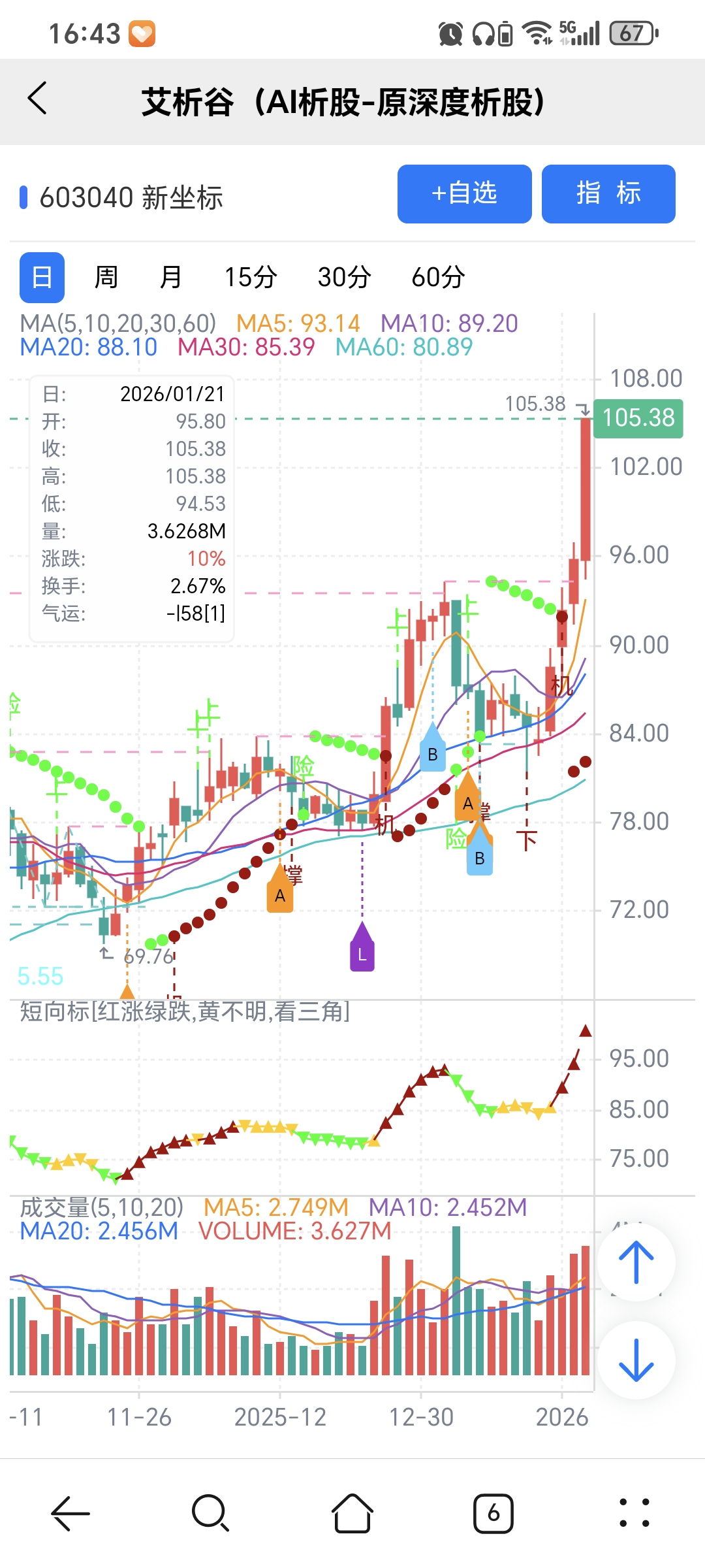 图中A、 B、L关注标记是对应AI选股模型当天下午2点多给出。
