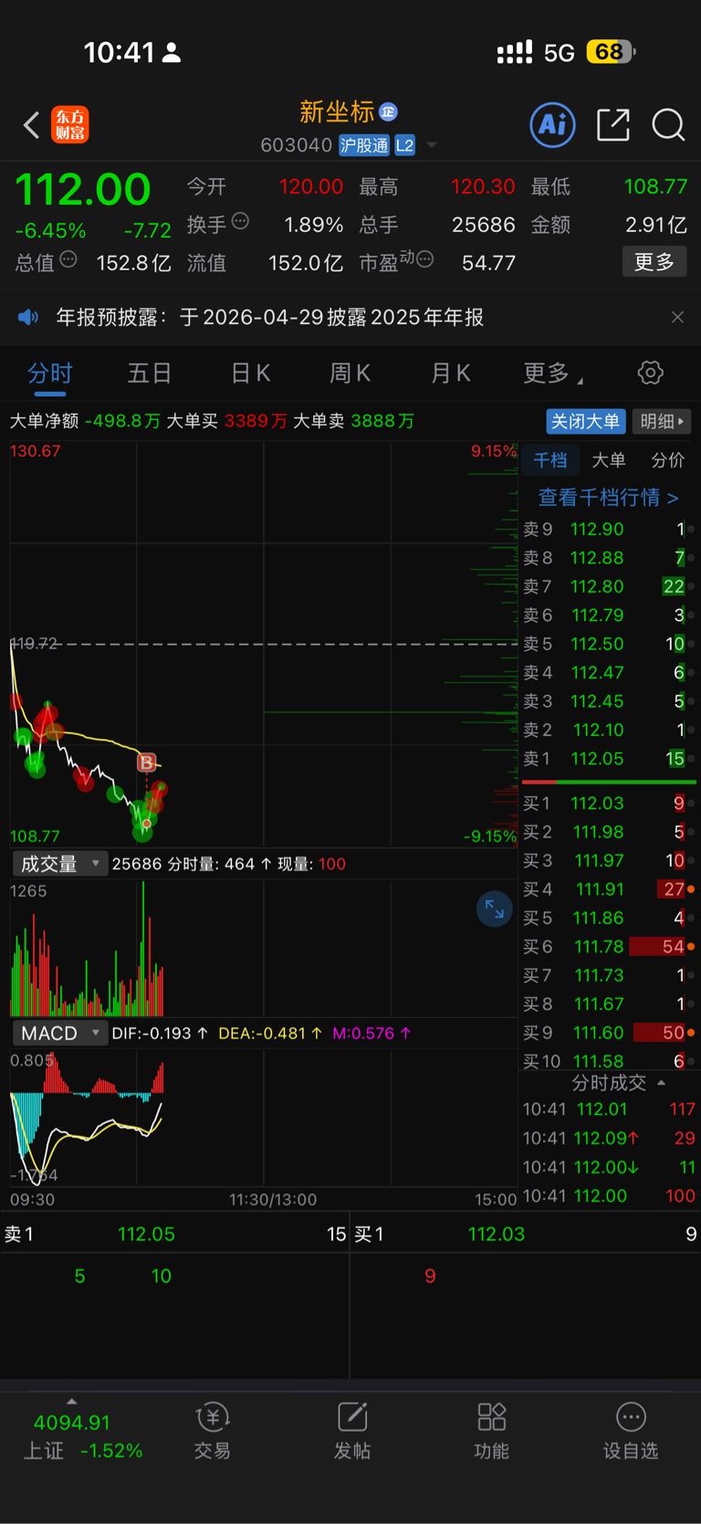 $新坐标(SH603040)$ 别人恐惧,我贪婪