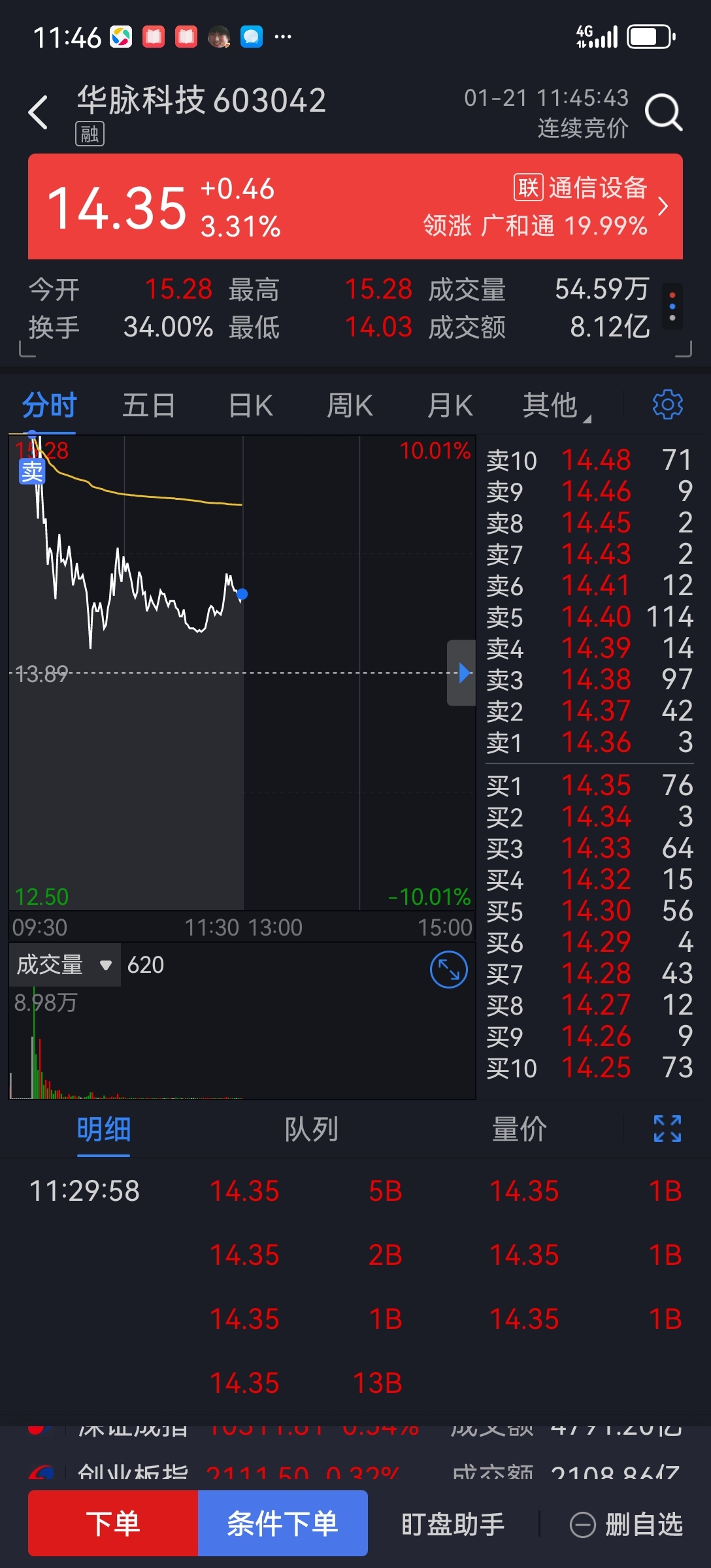 哎!条件单已触发!躺了3个板,还是感谢了!