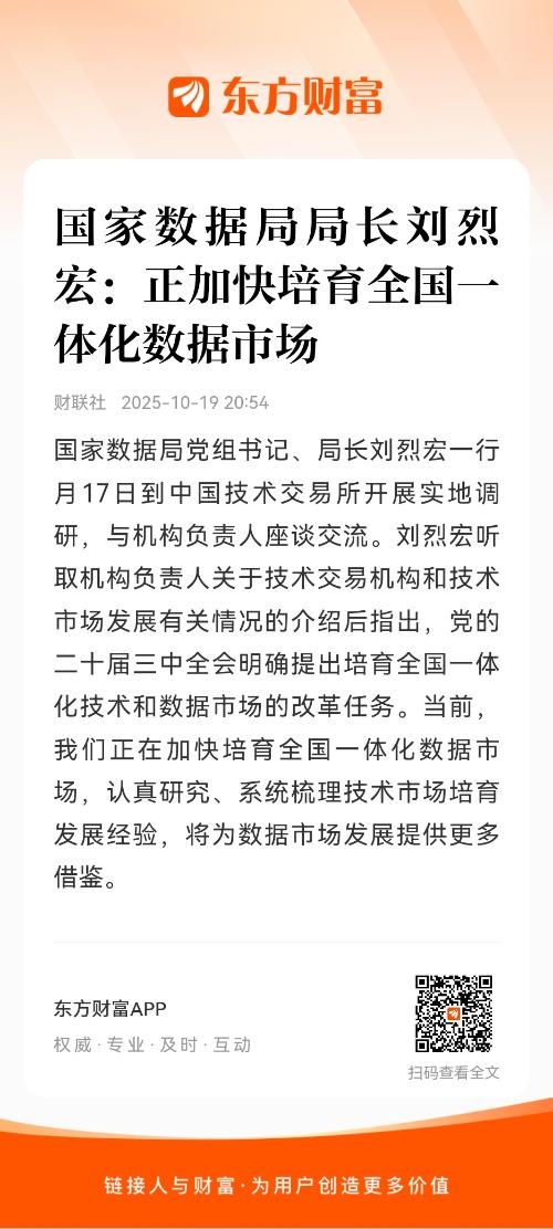 国家数据局党组书记、局长刘烈宏一行10月17日到中国技术交易所开展实地调研,与机构负责人座谈交流。刘烈宏听取机构负责人关于技术交易机构和技术市场发展有关情况的介绍后指出,党的二十届三中全会明确提出培育全国一体化技术和数据市场的改革任务。当前,我们正在加快培育全国一体化数据市场,认真研究、系统梳理技术市场培育发展经验,将为数据市场发展提供更多借鉴。
