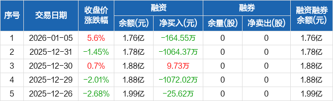 华脉科技:融资净偿还164.55万元,融资余额1.76亿元(01-05)