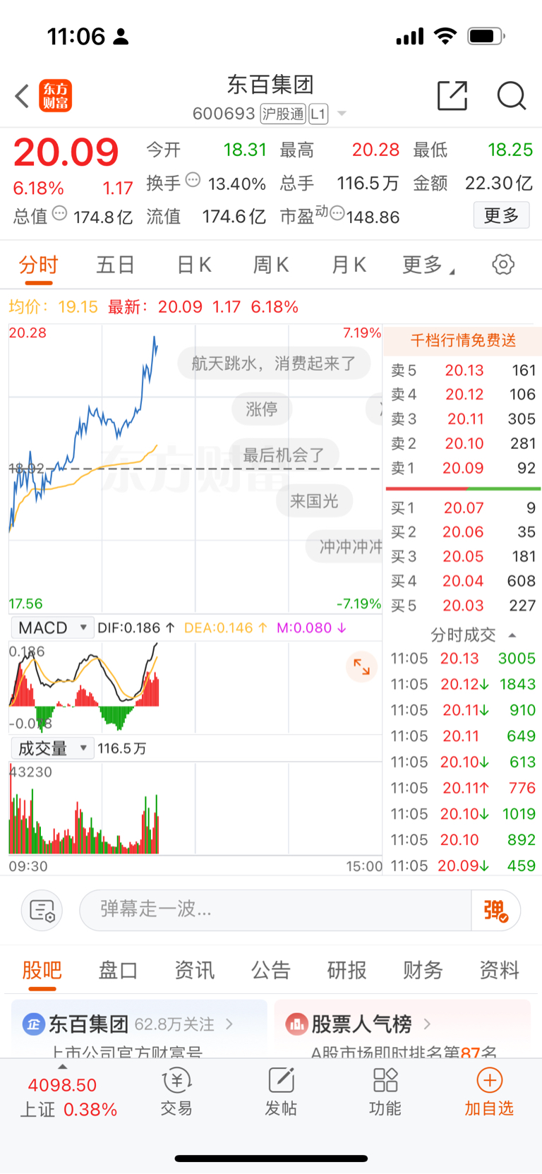 $华脉科技(SH603042)$ 65卖的华脉,19.98买的东百$东百集团(SH600693)$ 我知道这操作风险很大!但是我直觉告诉我!我做对了!