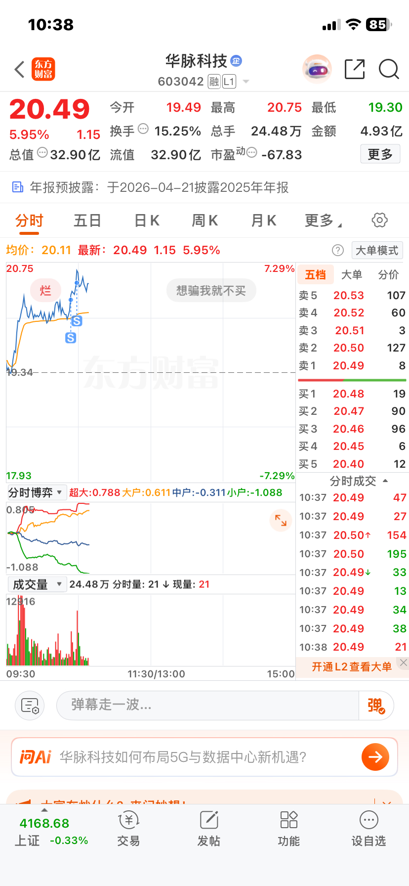 $华脉科技(SH603042)$ 走了20000股,留了10000股等涨停