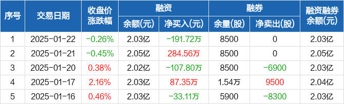 广州酒家:融资净偿还191.72万元,融资余额2.03亿元(01-22)