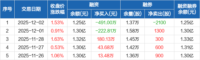 广州酒家:融资余额1.25亿元,创近一年新低(12-02)