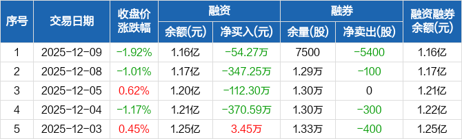 广州酒家:融资余额1.16亿元,创近一年新低(12-09)