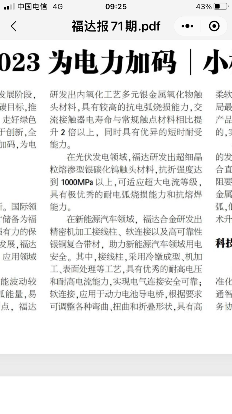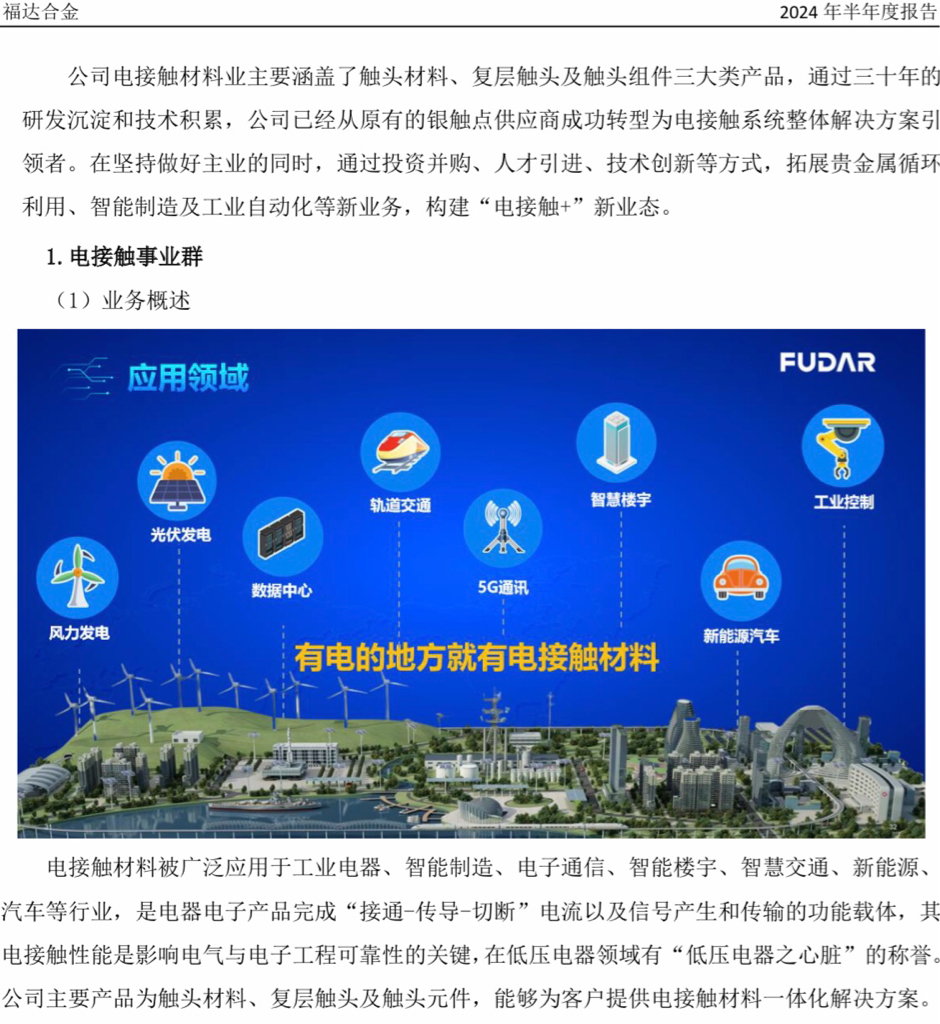 算力拉动数据中心建设,相关高端定制电触头材料增长速度超100%。动力电池业务节银