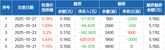 福达合金:连续3日融资净偿还累计298.39万元(10-27)