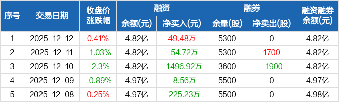 福达合金:融资净买入49.48万元,融资余额4.82亿元(12-12)