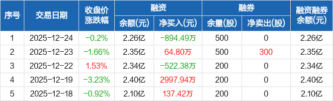 中策橡胶:融资净偿还894.49万元,融资余额2.26亿元(12-24)