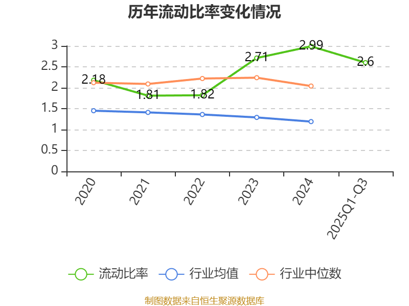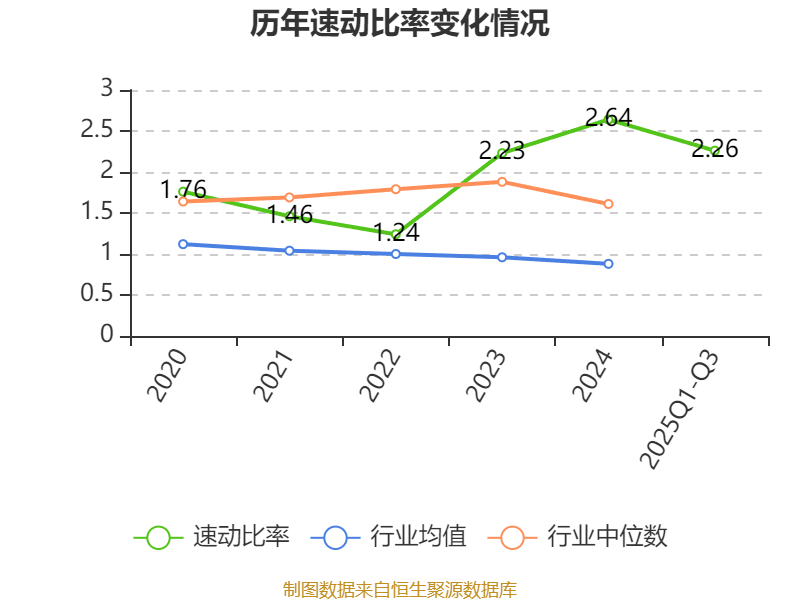 2025年前三季度,公司流动比率为2.6,速动比率为2.26。
