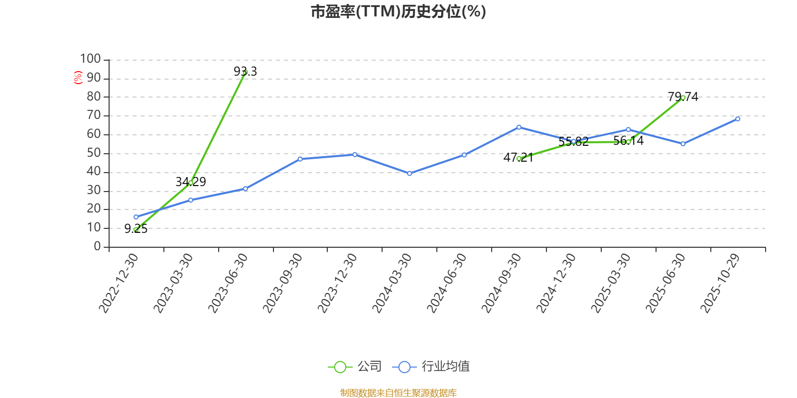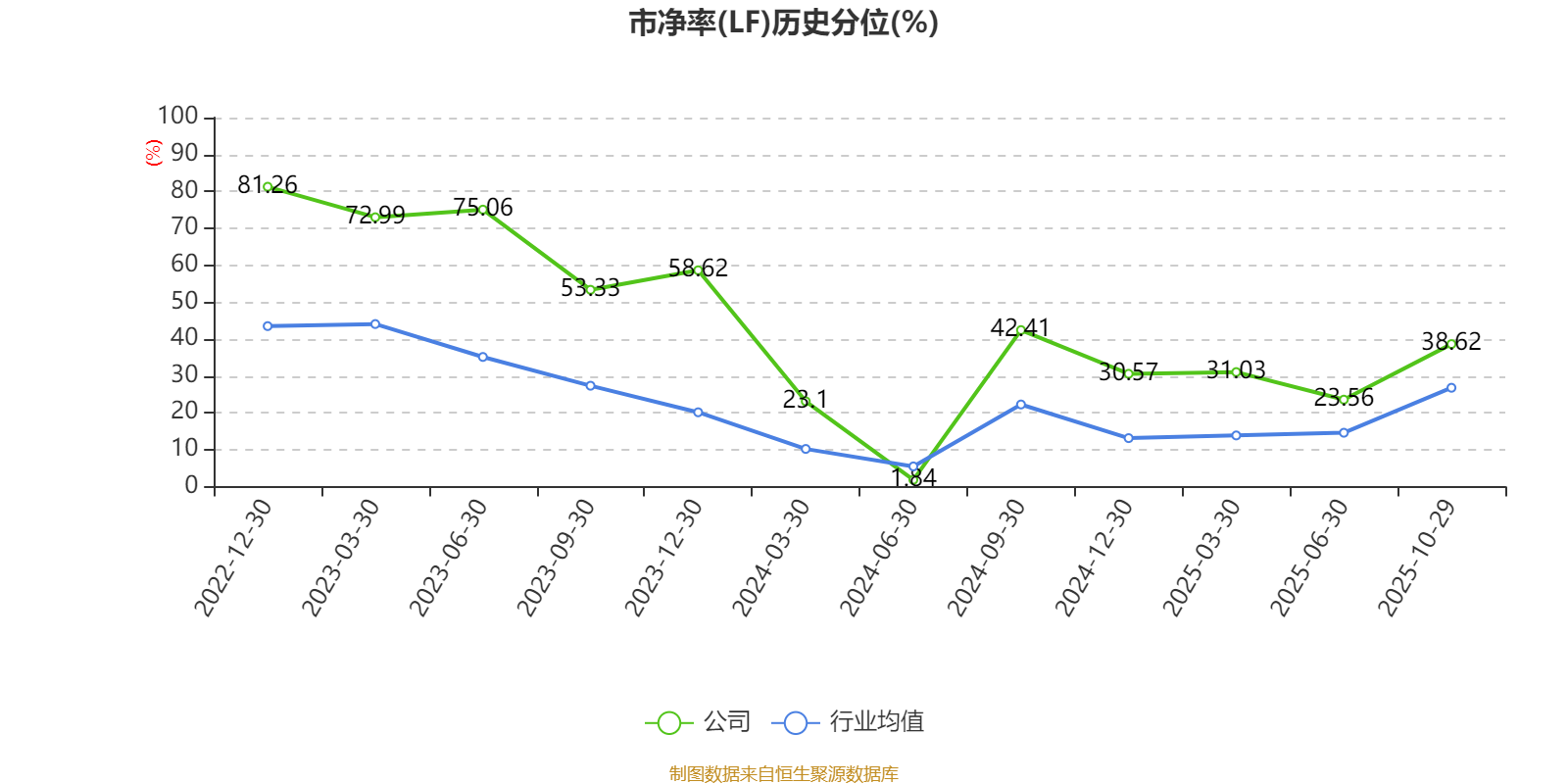 市盈率、市净率为负时,不显示当期分位数,会导致折线图中断。