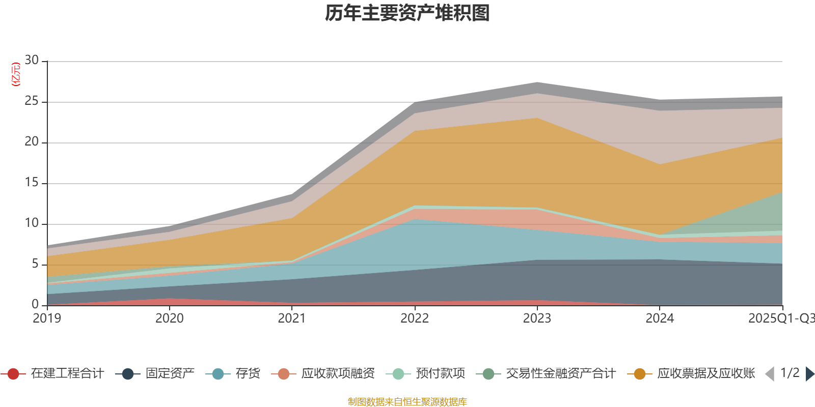 资产重大变化方面,截至2025年三季度末,公司交易性金融资产合计占公司总资产的18.54%,上年末为0;货币资金较上年末减少44.18%,占公司总资产比重下降11.73个百分点;应收票据及应收账款较上年末减少22.85%,占公司总资产比重下降8.24个百分点;固定资产较上年末减少10.22%,占公司总资产比重下降2.57个百分点。
