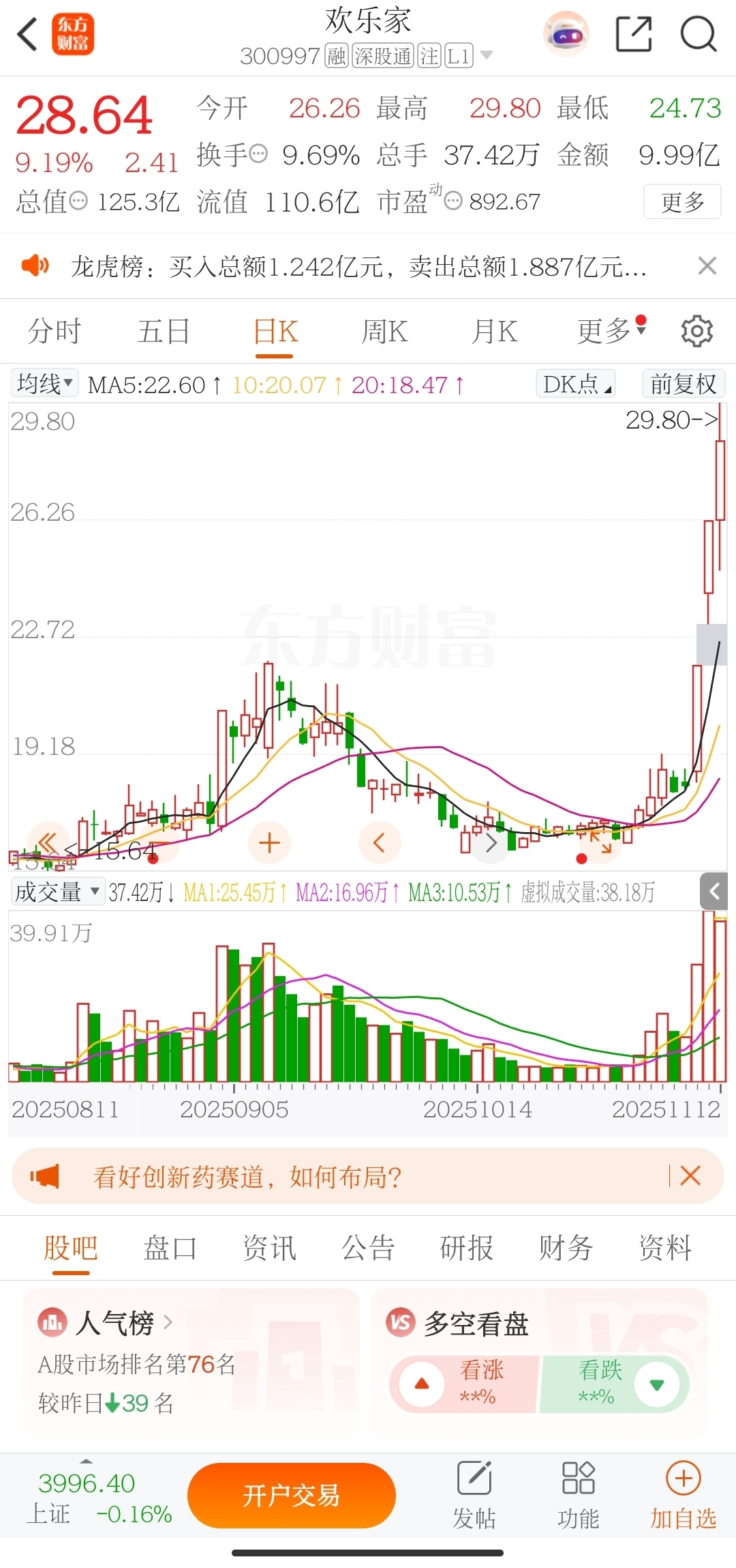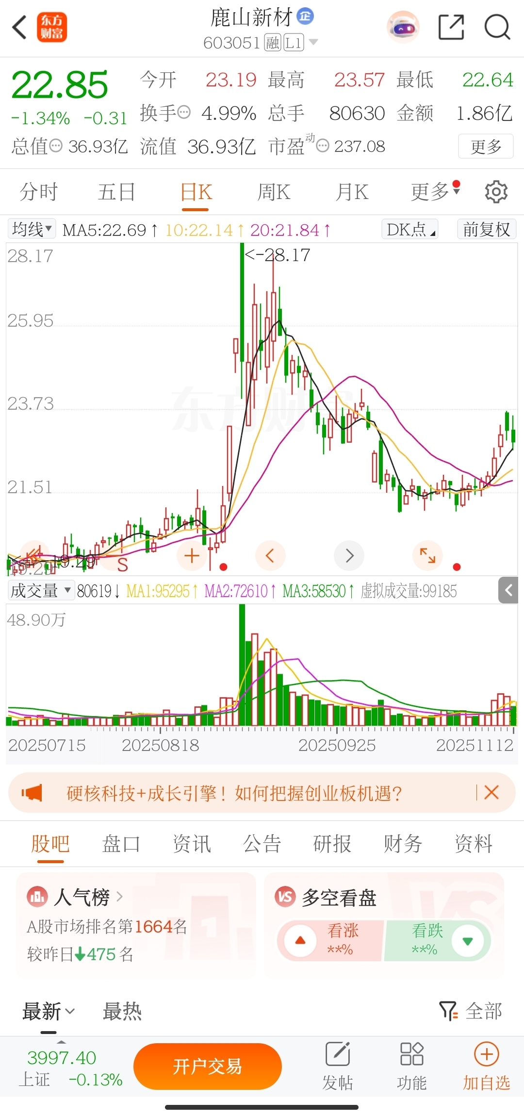 $鹿山新材(SH603051)$ $欢乐家(SZ300997)$ 能否模仿走一波,今天买入下周看结果