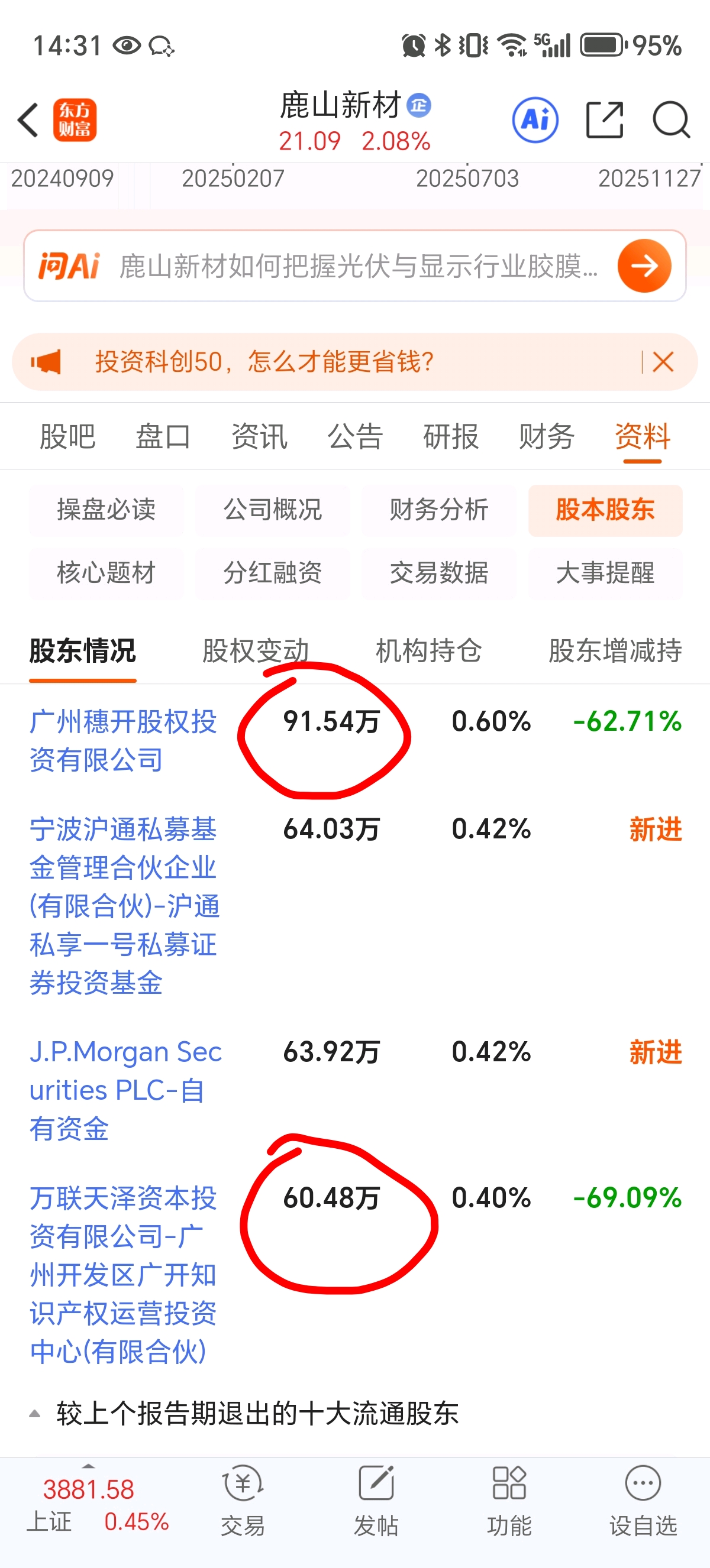 $鹿山新材(SH603051)$ 这个票最大的空头隶属于广州国资委旗下的产业投资机构,这种明晃晃的大空头蹲着要跑,哪个游资敢来试。除了今年9月份带着任务试了一波,在第三个板也是直接被砸穿。还有150万筹码等着要跑。