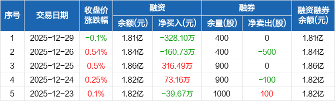 鹿山新材:融资净偿还328.1万元,融资余额1.81亿元(12-29)