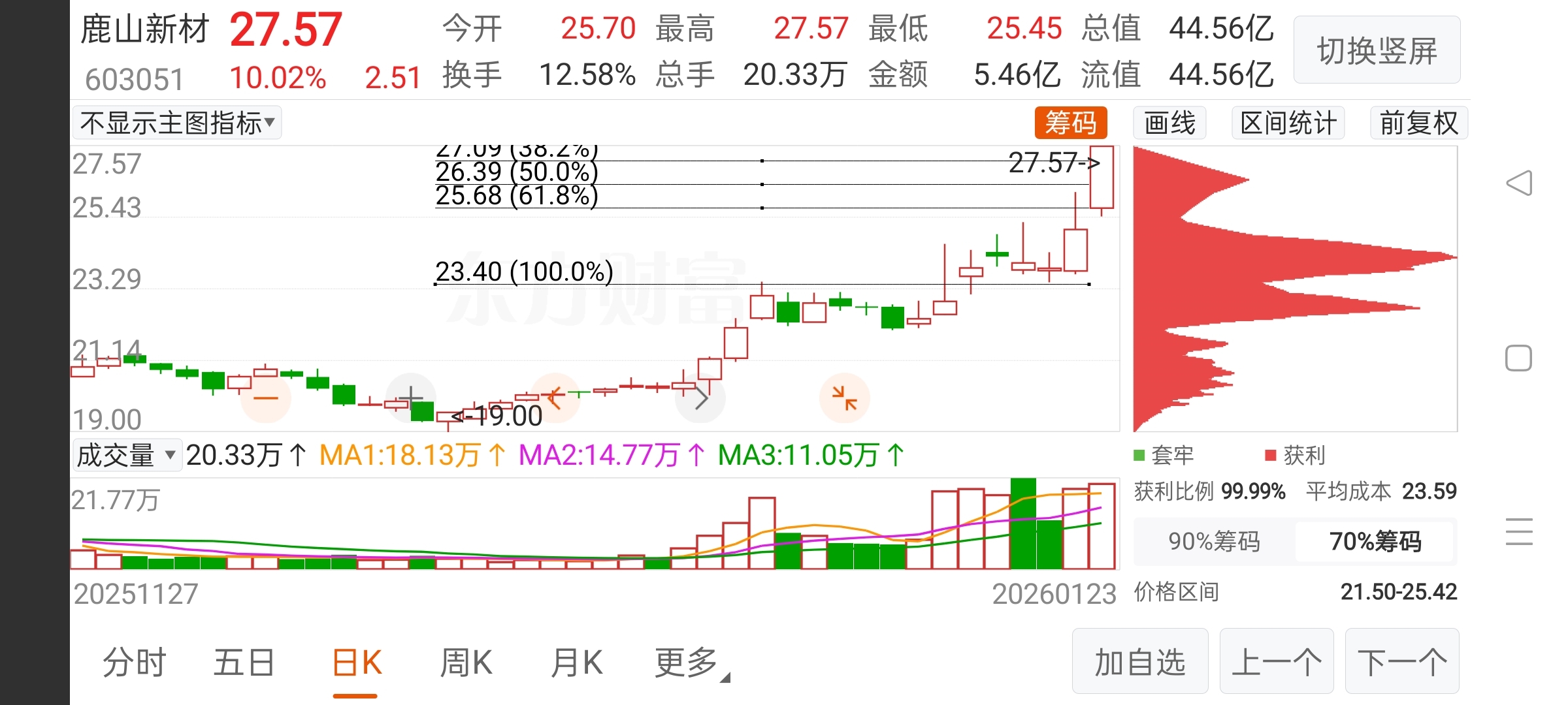 鹿山新材是后起来的商务航天,今天看黄金分割线27.1和27,27.8,28.5,