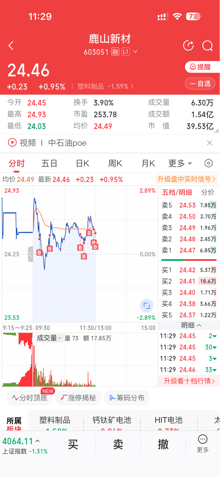 $鹿山新材(SH603051)$ 跪求主力打压?