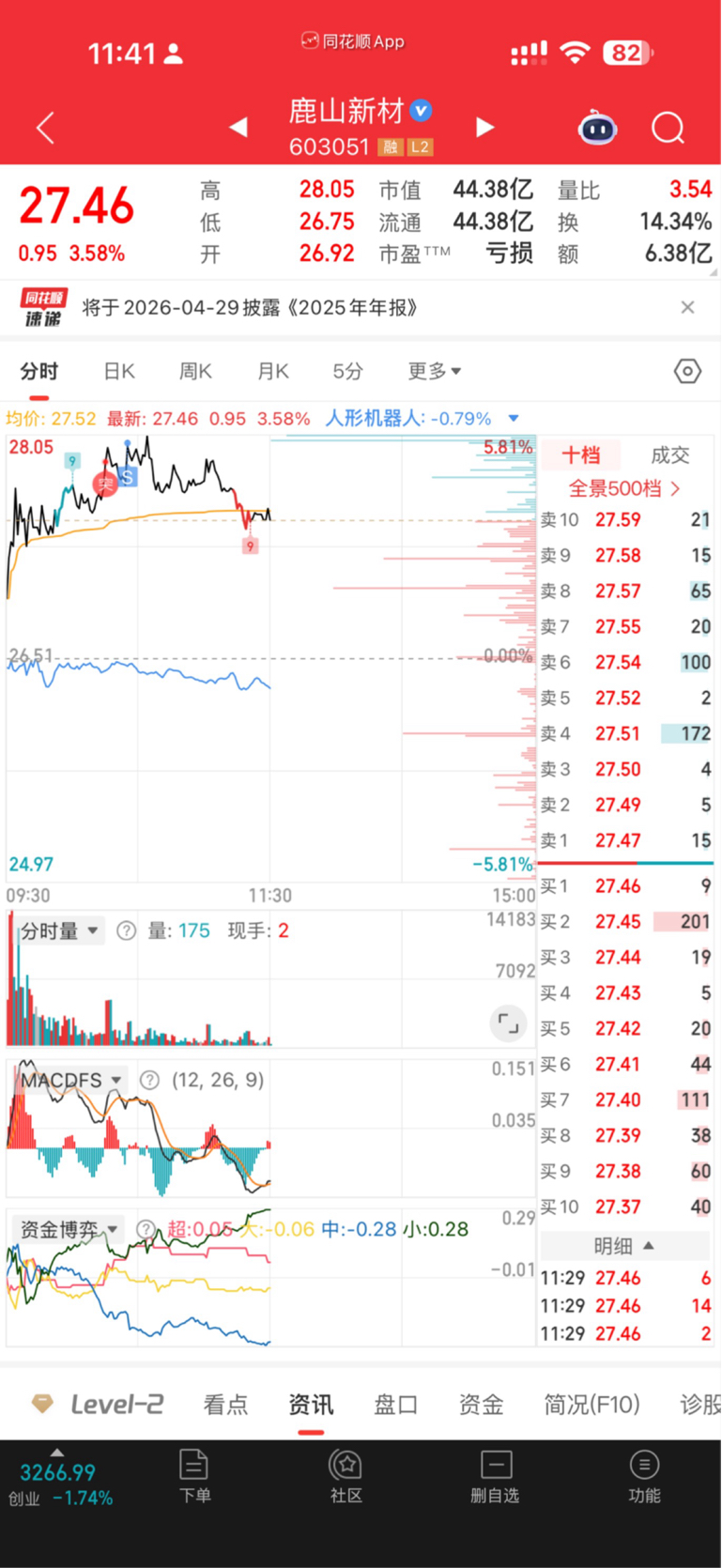 $鹿山新材(SH603051)$ 但愿没卖飞
