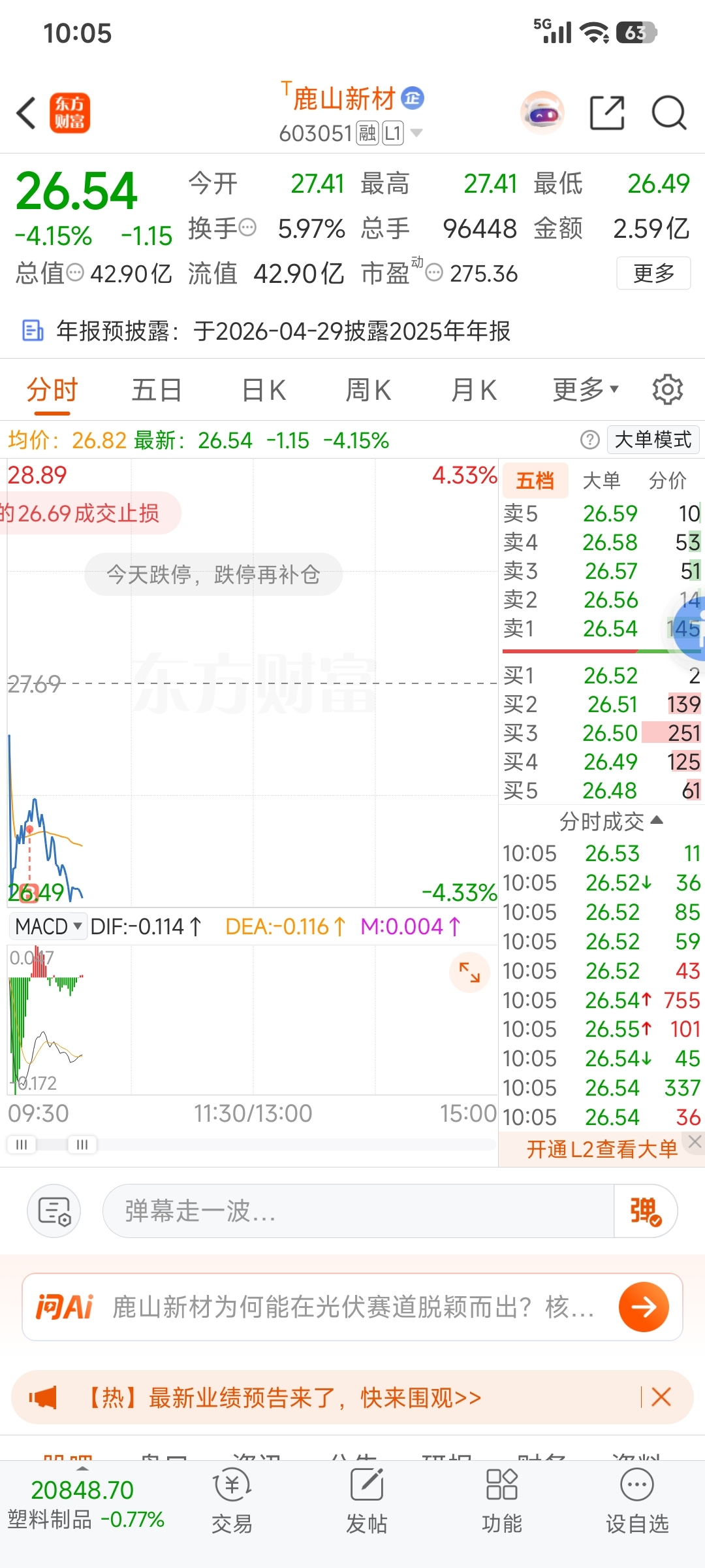 $鹿山新材(SH603051)$ 主力牛,秀了我一脸